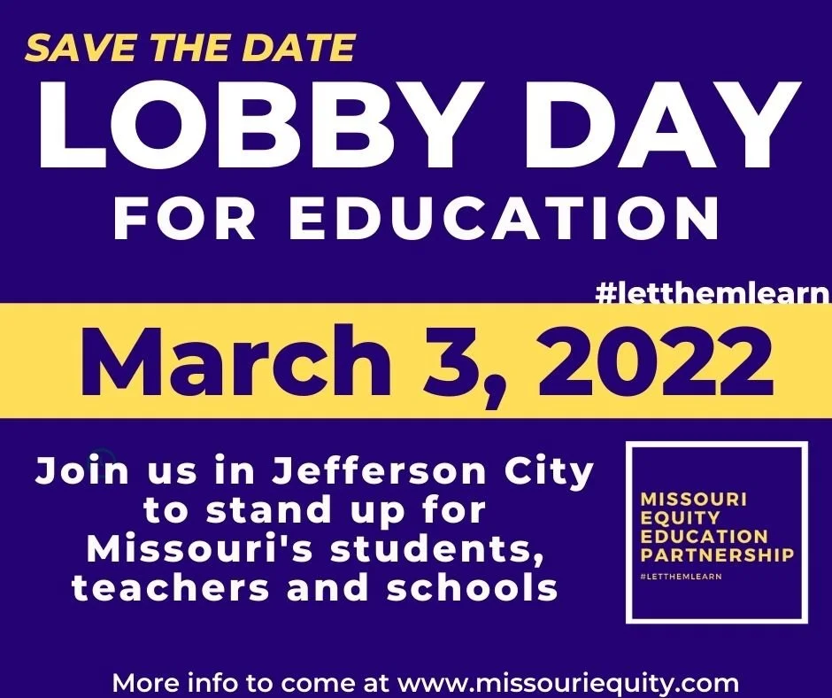 Join us for a lobby day in Jeff City! We will be meeting with lawmakers all day to fight for equity education in Missouri.